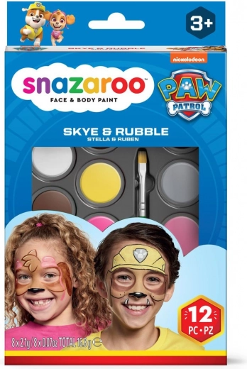 Posebna izdaja barv za obraz SNAZAROO z licenco TAČKE NA PATRULJI je popolna za oboževalce likov Skye in Rubble. Izbrani odtenki vam omogočajo ustvarjanje učinkovitih mask v nekaj minutah, priložena šablona s slikovnim vodnikom pa olajša prvo ličenje tudi popolnim začetnikom.