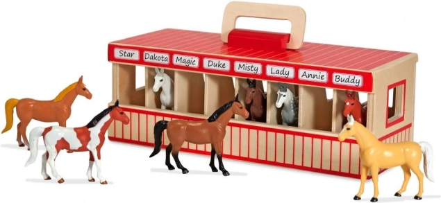 Ta lesena staja otrokom ponuja realistično okolje za skrb za konjičke in ustvarjanje lastnih zgodb. Z osmimi boksi ima vsak konj svoje mesto, kar uči otroke reda in razvija njihovo domišljijo.