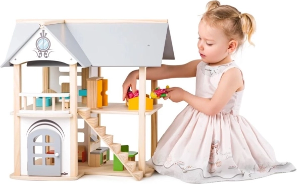 Ta lepo izdelana hišica za punčke je idealen dodatek k otroški sobi. Z merami 53 x 32,5 x 51 cm nudi dovolj prostora za priloženo pohištvo. Hišica je izdelana iz naravnega lesa s pastelnimi poudarki in je primerna za otroke od 3 let naprej.