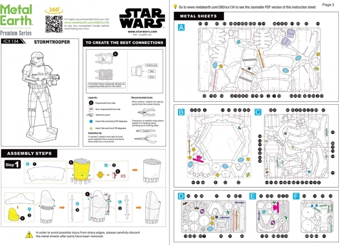 V paketu so trije kovinski listi z izrezanimi deli, pinceta in podrobna navodila za sestavljanje. Za spajanje delov uporabite jezičke in tanke klešče (niso priložene).
