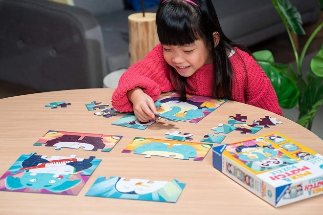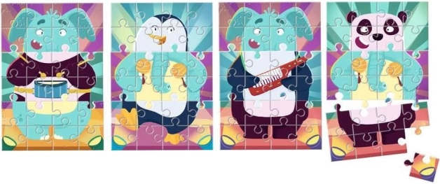 Uživajte v pametnem sestavljanju in zabavnem mešanju koščkov: v pakiranju najdete 3 otroške sestavljanke, vsaka s 24 koščki. Koščke je mogoče poljubno kombinirati med vsemi tremi slikami in tako ustvarjati zabavne živalce. Velikost sestavljene slike je približno 18 × 26 cm.