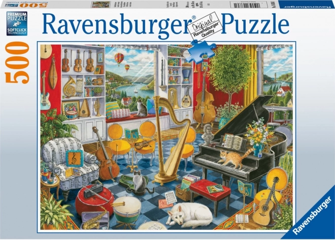 Odkrijte kakovostno sestavljanje s sestavljanko Ravensburger – motiv Glasbena soba s 500 koščki ponuja sprostitev, urjenje koncentracije in čudovito končno sliko v dimenzijah pribl. 49 × 36 cm.