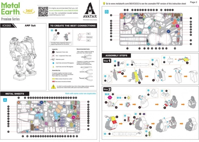 Premium serija Metal Earth prinaša realistični model AMP Suit iz vesolja Avatar, izrezan iz jeklenih ploščic s pomočjo laserskega graviranja. Vsak del natančno sede v naslednjega, zato brez lepila in spajkanja ustvarite impresiven zbirateljski kos z avtentičnimi detajli in značilnim vojaškim videzom.