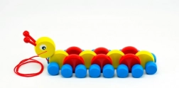 Priskrbite svojim otrokom to barvito leseno gosenico, ki je idealna za razvoj motoričnih sposobnosti najmlajših. Pri vlečenju se gosenica plazi in otrokom prinaša veselje do gibanja.