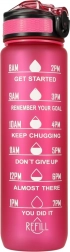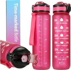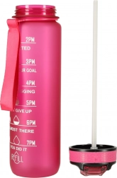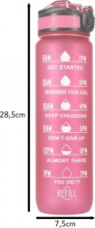 Na strani najdete časovne oznake od jutra do večera z motivacijskimi sporočili, ki vas vodijo k rednemu vnosu tekočine. Prostornina 1 liter je popolna za celodnevno uporabo doma, v pisarni in v fitnesu.