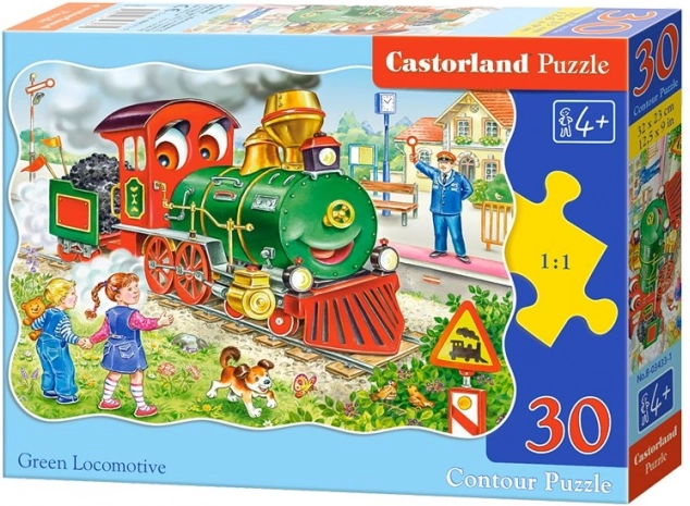 Barvita otroška sestavljanka z motivom zelene lokomotive ponuja 30 kosov in po sestavljanju ustvari sliko velikosti 32 × 23 cm. Idealna za prve korake v sestavljanju, s kakovostno izdelavo in privlačnimi barvami, ki podpirajo sposobnost koncentracije, potrpežljivost ter razvoj domišljije.