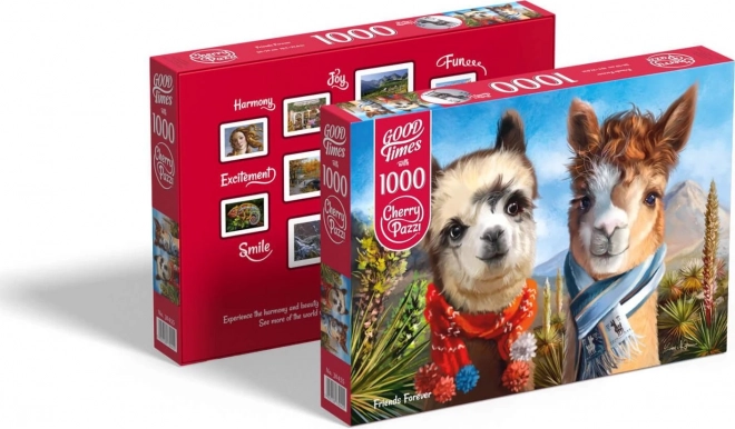 Stilska sestavljanka CHERRY PAZZI »Prijatelji za vedno« navduši z očarljivim motivom dveh alpak v pisanih šalih na ozadju gora in modrega neba. Zaradi premišljene razporeditve koščkov in kakovostnega tiska je sestavljanje tekoče in zabavno tako za začetnike kot za izkušene ljubitelje sestavljank.