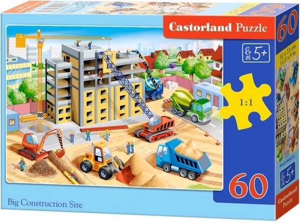 Barvita otroška sestavljanka z motivom velikega gradbišča prinaša odlično zabavo in učenje. Vsebuje 60 kosov in po sestavljanju ustvari sliko 32 × 23 cm. Zahvaljujoč kakovostni izdelavi in pisanim ilustracijam otroci urijo fino motoriko, koncentracijo in potrpežljivost.