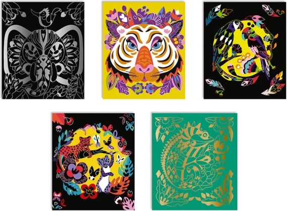 Odkrijte ustvarjalni komplet za otroke, ki zabava ure in ure: praskanke Živali sveta znamke JANOD. Z odstranjevanjem barvnega sloja otroci postopoma odkrivajo čudovite motive živali, razvijajo fino motoriko, potrpežljivost in občutek za podrobnosti. Idealno za doma in na poti.