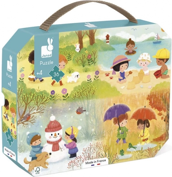 Stilska sestavljanka JANOD otrokom prinaša zabaven in poučen način spoznavanja pomladi, poletja, jeseni in zime. Zaradi priročnega kovčka se sestavljanka zlahka prenaša, nič se ne izgubi, sestavljanje pa lahko uživate kjerkoli.