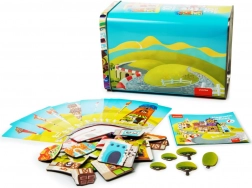 Set vsebuje 10 kartonskih vzorcev, na katerih se lahko gradijo hiške. Magnetni deli iz trdega kartona z bleščečo površino se enostavno obrišejo z vlažno krpo. Izdelano iz ekološkega lesa in namenjeno otrokom od 3. leta dalje. Izdelano v Evropi.