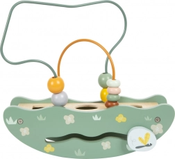 Otroci lahko premikajo kroglice po zankastih tirnicah, kar razvija njihovo koordinacijo in fino motoriko.