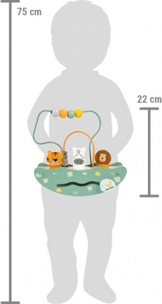Ta vsestranski motorični labirint z gugalnico je idealno orodje za otroke, ki želijo hkrati učiti se in se igrati. Igrača je izdelana iz robustnega lesa in vsebuje dve žični zanki s pisanimi kroglicami. Zanki podpirata trening finomotoričnih veščin in koordinacijo oko–roka pri malih raziskovalcih.