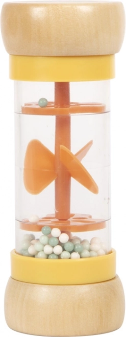 Uživajte v pomirjujočem zvoku nežnega dežja z dežno palico Small Foot, ki razvija slušno in vizualno zaznavanje otrok. Zaradi prozornega ohišja s kroglicami in vrtečim se propelerčkom pritegne na prvi pogled, služi kot ropotuljica in ritmična igrača ter je enostavna za prijem drobnih rokic. Idealna za na pot, primerna od 6 mesecev. Višina 14 cm, Ø 5 cm; material: les in plastika.