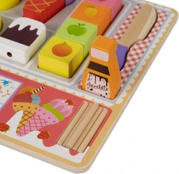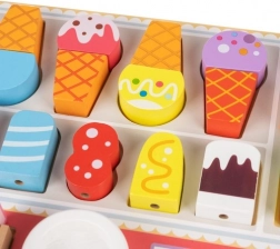 Ta trendovska lesena sladoledarnica prinaša otrokom avtentično vzdušje trgovinice s sladkarijami. Z živahnimi barvami in številnimi kombinacijami sladoledov se otroci učijo prepoznavati barve, oblike in velikosti ter naravno razvijajo kognitivne in senzorične veščine. Leseni elementi lepo sedejo v majhno roko in podpirajo pravilen oprijem ter potrpežljivost pri zlaganju kepic in lučk.