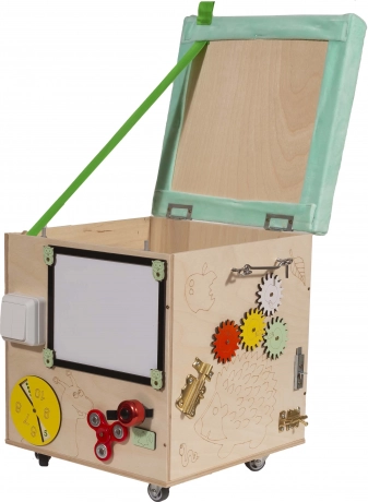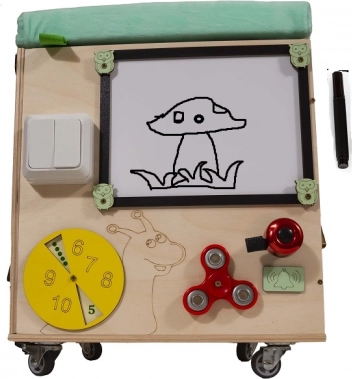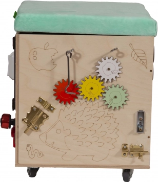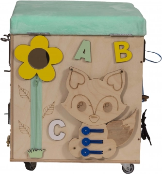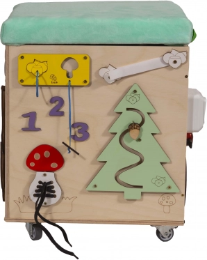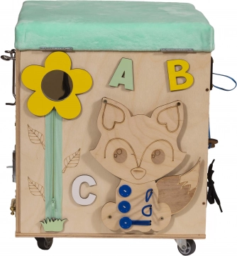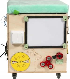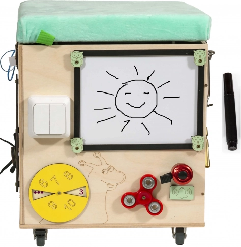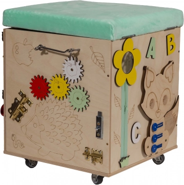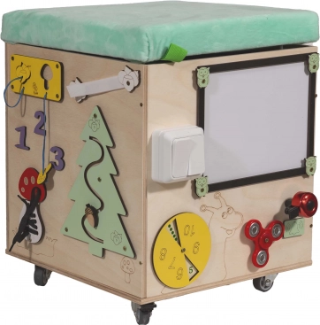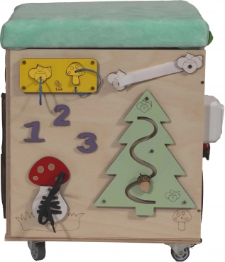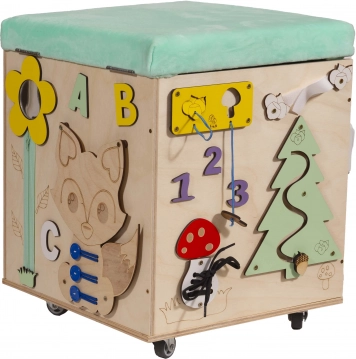 3v1 Montessori manipulativna kocka / tabure s sedežem in kolesci