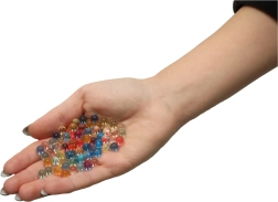Te hidrogelne kroglice po namakanju hitro nabreknejo in dobijo gladko, prožno površino. Zahvaljujoč univerzalni velikosti 7–8 mm so idealne za igrače in pištole na gelne kroglice, hkrati pa služijo kot dekorativno polnilo v vazah ali za senzorične aktivnosti otrok.