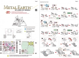 Posamezne dele odstranite iz kovinskih plošč; po potrebi uporabite majhne klešče za rezanje (niso priložene). Deli se med seboj povezujejo z zaskočnimi zapirali, sestavljenimi iz jezička in odprtine. Jeziček upognite z majhnimi tankimi kleščami (niso priložene) in postopoma povežite vse zaskočne spoje, dokler ne nastane zelo realističen mojstrski izdelek!
