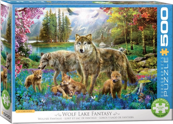 Uživajte v sproščenem sestavljanju s sestavljanko EUROGRAPHICS z motivom volčje družine ob jezeru. Kosi so ekstra veliki (pribl. 2,5 cm), zato so odlični za otroke, starejše in za vse, ki imajo radi lažje prijemanje ter večje udobje pri sestavljanju. Končna slika meri približno 67,63 × 48,89 cm.