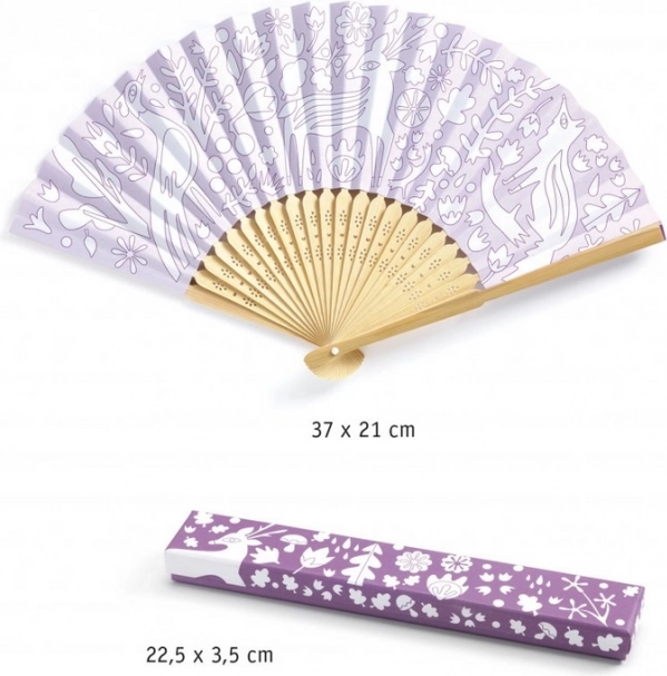 Set za barvanje pahljače znamke Djeco ponuja kreativno zabavo za otroke od 5 let dalje. S papirnato pahljačo in shranjevalno škatlico lahko otrokom omogočite razvoj domišljije in fine motorike.
