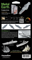 Sestavite ikonično letalonosilko USS MIDWAY iz realističnih kovinskih delov. Set METAL EARTH Premium Series prinaša natančno lasersko graviranje, podrobno izvedbo in impresiven zbirateljski model. Sestavljanje zahteva potrpežljivost in spretnost, nagrada pa je ekskluzivna dekoracija z avtentičnimi detajli palube in nadgradnje.