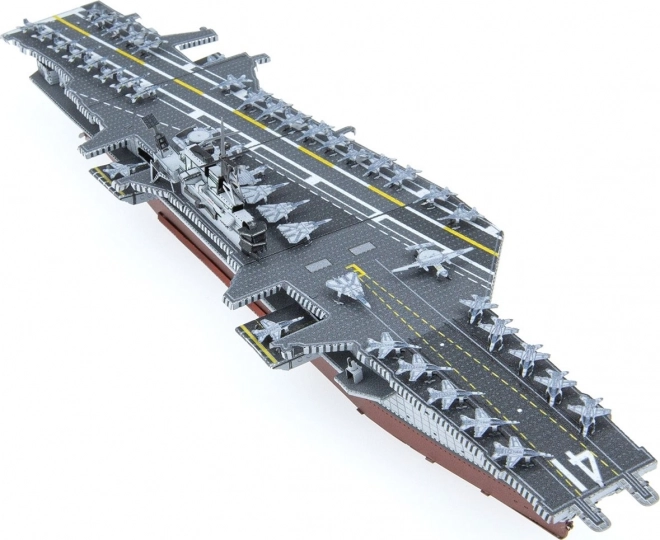 Končani model letalonosilke z miniaturnimi letali na palubi odlično izstopa kot dekoracija in zbirateljski kos.