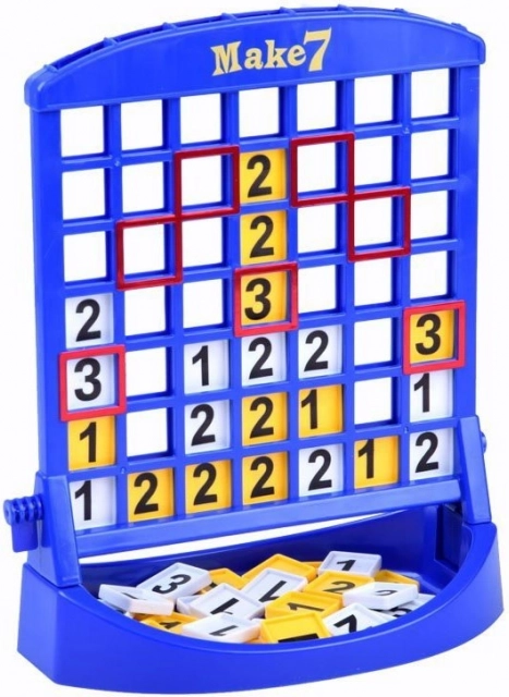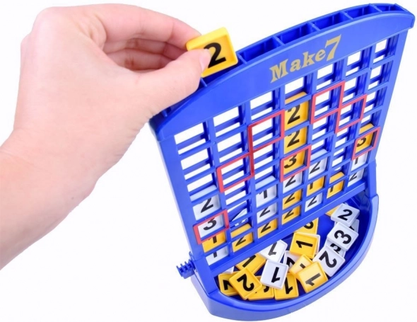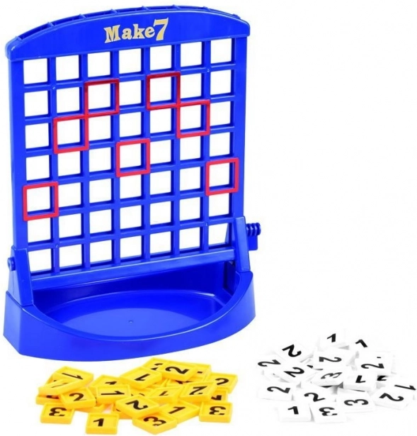 »Sestavi 7« je odlična igra za otroke in odrasle, ki združuje logiko in zabavo. Igralci izmenično vstavljajo številčne ploščice v plastično stojalo in skušajo doseči končni seštevek sedem. Zaradi preprostih pravil je igra idealna za družinske trenutke in razvoj veščin, kot sta računanje in načrtovanje.
