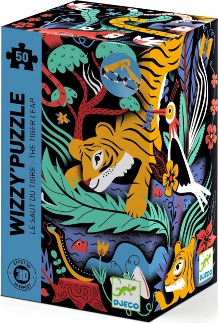 Uživajte v edinstveni izkušnji sestavljanja s sestavljanko s tigrom, ki se po namestitvi 3D očal spremeni v impresivno prostorsko sliko. Stereoskopski tisk motivu doda globino in dinamiko, tako da tiger dobesedno izstopi iz slike.