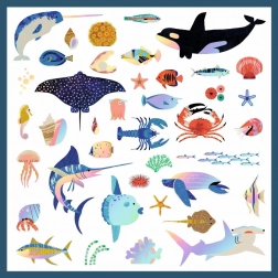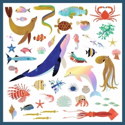 Razvijajte domišljijo z morskimi motivi, ki se svetijo zaradi kovinskih površin. Nalepke lahko uporabite takšne, kot so, ali pa jih uporabite za dopolnjevanje in dokončanje risb. Dvojne kopije listov zagotavljajo, da se lahko k priljubljenim motivom vračate znova in znova.