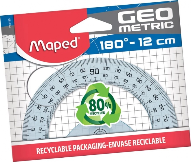 Prozoren kotomer Maped 12 cm je zanesljivo orodje za šolarje in študente. Zahvaljujoč prozorni izvedbi zlahka vidite podlago in dosežete natančno poravnavo ter hiter odčitek vrednosti.