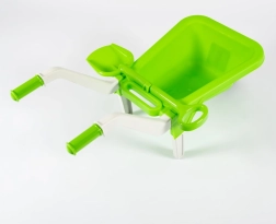 Ta lahka in stabilna otroška samokolnica omogoča otrokom prevažanje peska, zemlje ali igrač ter spodbuja motoriko in občutek za odgovornost. Zahvaljujoč trdnemu plastičnemu koritu in udobnim ročajem je upravljanje preprosto tudi za mlajše otroke. Zelena barva se odlično poda vsakemu vrtu in peskovniku.
