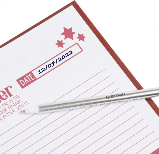 Črtni blok s poljem za datum in kakovosten kemični svinčnik HARRY POTTER olajšata načrtovanje, šolske zapiske in vsakodnevni journaling.
