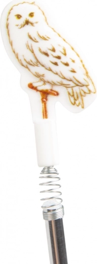 Izviren topper v obliki bele sove doda pisanju šarm. Trpežna vzmet drži okras stabilno, pero pa udobno leži v roki.