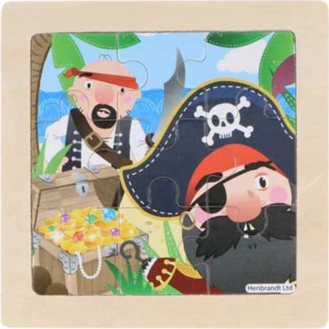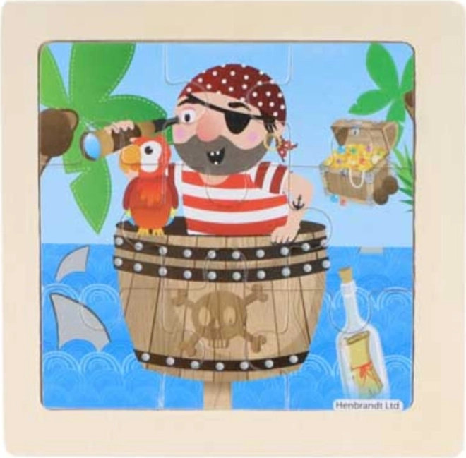 Odkrijte zabavne lesene puzzle s piratskim motivom z 9 kosi, idealne za majhne otroke. Kosi se sestavljajo na trdno leseno podlago z zarezanimi robovi za lažje rokovanje. Sestavljanje spodbuja fino motoriko, logično razmišljanje in domišljijo.