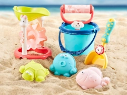 Ta 7-delni set vsebuje vse, kar vaš otrok potrebuje za ustvarjalno igra v pesku. Vedro, lopatka, tri živahne oblike in sito z mlinčkom omogočajo nešteto načinov za razvijanje otroške domišljije in fine motorike. Igra v pesku nikoli ne bo dolgočasna in s tem setom bo vsaka igra še bolj zabavna. Zaradi privlačnih barv in zanimivih oblik živali bo set priljubljen za vse male graditelje.