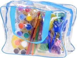 Prozorna torba z zapiranjem za enostavno organizacijo in prenos slikarskih pripomočkov.