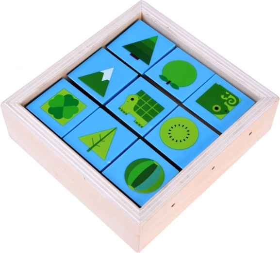 Lesene izobraževalne kocke so zasnovane tako, da otroci razvijajo kreativnost in kognitivne sposobnosti skozi zabavno sestavljanje. Otroci se učijo prepoznati osnovne barve in oblike, vadijo matematiko in se hkrati učijo imen predmetov.