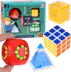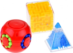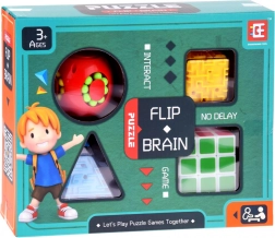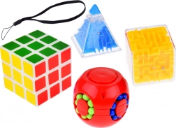 Set vsebuje štiri unikatne igrače, ki izboljšujejo koncentracijo in motorične sposobnosti rok. Idealen za sprostitev in vadbo logičnega mišljenja.