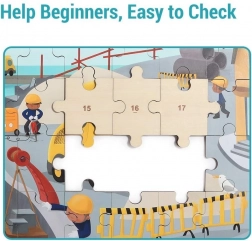 Odkrijte pametno igračo, ki združuje veselje do igre z učenjem. Lesena sestavljanka s motivom prometnih sredstev (gradbišče) je skrita kar v plastičnem buldožerju. Ta je gladko in varno izdelan, ima kolesa za vožnjo in odpirljiv spodnji pokrov, v katerega otroci priročno pospravijo sestavljanko ali svoje zaklade.