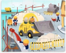 Najprej sestavite sliko, nato pa uživajte v zabavni vožnji s plastičnim buldožerjem. Otroci vadijo logiko pri sestavljanju in domišljijo pri vožnji vozila.