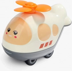 Plastični helikopter s kolesci ima na spodnji strani pokrov, ki se odpira, zato lahko vanj otroci pospravijo celotno sestavljanko ali svoje male zaklade.