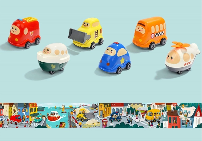Skupaj z drugimi modeli TOP BRIGHT (gasilskim in policijskim avtom, šolskim avtobusom, buldožerjem, helikopterjem) boste na tleh sestavili tekočo panoramsko sestavljanko.
