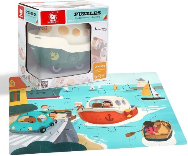Odkrijte pametno povezavo sestavljanke in igrače v enem: lesena sestavljanka z motivom pristanišča, skrita v prisrčni plastični ladjici na kolesih. Vsak košček je oštevilčen za lažje sestavljanje, razvija logično in matematično razmišljanje in zahvaljujoč praktičnemu shranjevalnemu prostoru imate sestavljanko vedno pri roki. Odlično dopolni mini serijo prevoznih sredstev TOP BRIGHT in ustvari panoramsko sestavljanko.