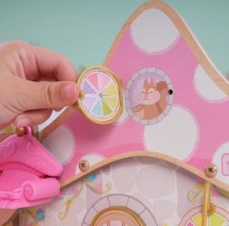 Vrteči se vrtiljak z rožnatimi sedeži v igro vnese gibanje in presenečenje. Otroci lahko vozijo figurice in ustvarjajo nove pustolovske scenarije.