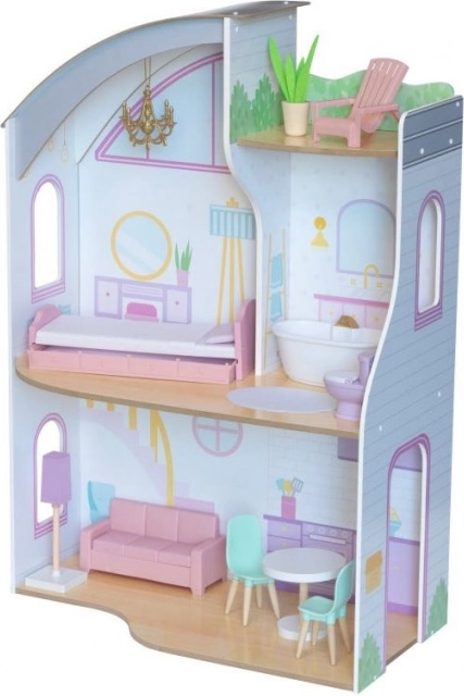 Stilna hišica za punčke KidKraft Elise v pastelnih barvah prinaša otrokom neskončne možnosti igre. Ponuja 2 nadstropji, 12 kosov pohištva in 2 sobi z kopalnico. Zaradi lahkega modernega dizajna in prostorne zasnove je idealna za ustvarjalno igro otrok od 3 let dalje.