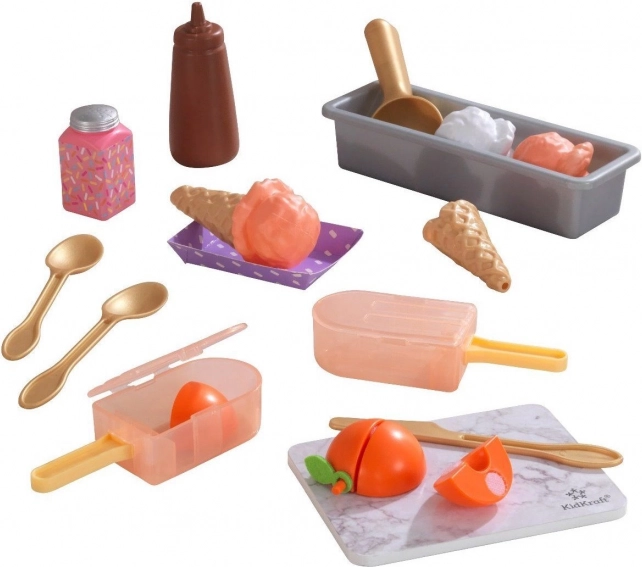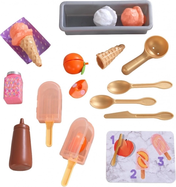 Poletna dobrota skozi vse leto! Komplet KidKraft Create & Cook breskvicevi lučki prinaša otrokom realistično igro priprave sladic – od rezanja sadja do okraševanja s čokoladnim prelivom. Prozorne modelčke za lučke otrokom omogočijo videti, kako “sestavine” izgledajo v notranjosti, kroglice sladoleda za kornete pa bodo navdušile male slaščičarje.