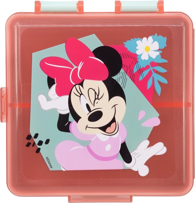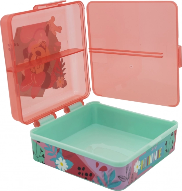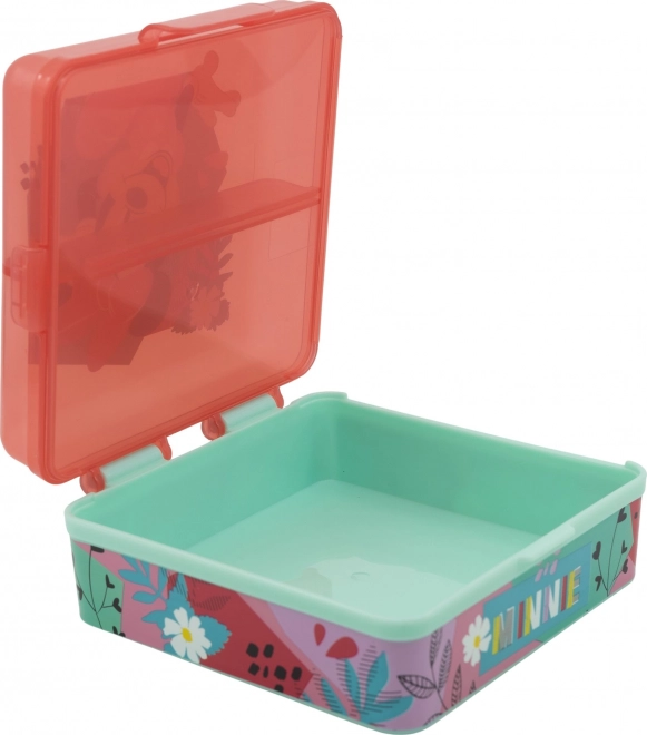 Kvadratna Multi Box za malico Minnie Mouse je idealen spremljevalec za male šolarje in izletnike. Zaradi praktičnih pregrad omogoča urejanje malice v več hodov, brez mešanja okusov. Otroci ga zaradi dizajna radi vzamejo povsod s seboj.