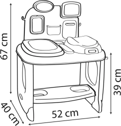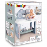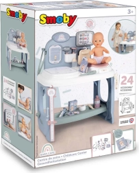 Otroški center nege SMOBY BABY CARE je idealen za male zdravnike in zdravnice. Ponuja realistične elemente za pregled “pacienta” – punčke ali pliškota – od merjenja in tehtanja do poslušanja srčka. Odstranljiva elektronska tablica z gumbi, LED-lučkami in zvoki otroke interaktivno vodi skozi postopke oskrbe.