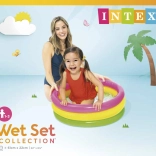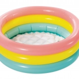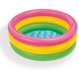 Trije napihljivi obroči v izrazitih odtenkih roza, rumene in zelene dodajo bazenu na atraktivnosti in spodbujajo otroke k igranju.