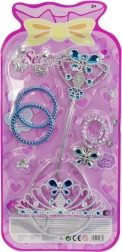 Ta princeskin komplet je popoln dodatek za male ljubiteljice pravljic. S kombinacijo krone, uhanov in zapestnic v ujemajoči se modri barvi pričara očarljiv videz v hipu ter spodbuja ustvarjalno igro vlog.